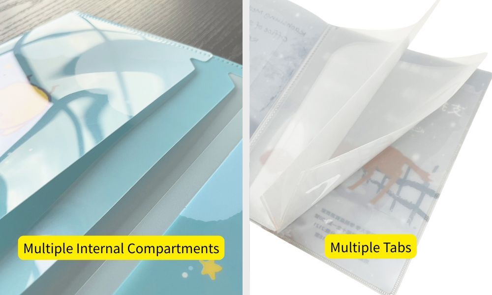 レポートカバーの内側ページは、ニーズに応じて複数のコンパートメントやタブでカスタマイズできます。仕切り層とタブの両方が、文書を効率的に整理するのを容易にし、全体的なファイル管理を向上させます。このデザインは、ビジネス、学校、機関に最適で、日常の文書アクセスを簡素化し、オフィスの整理整頓とプロフェッショナリズムを向上させます。