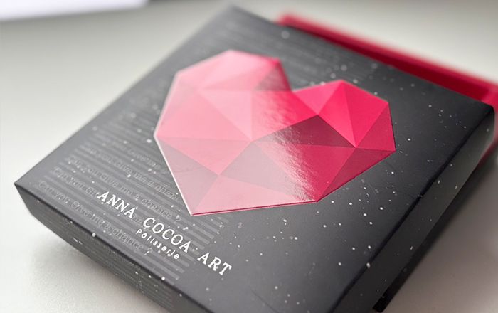- Hộp quà: Spot UV kết hợp với lớp laminate mờ và dập foil làm tăng cường các lớp hình ảnh và sức hấp dẫn lễ hội, hỗ trợ hình ảnh thương hiệu cao cấp.