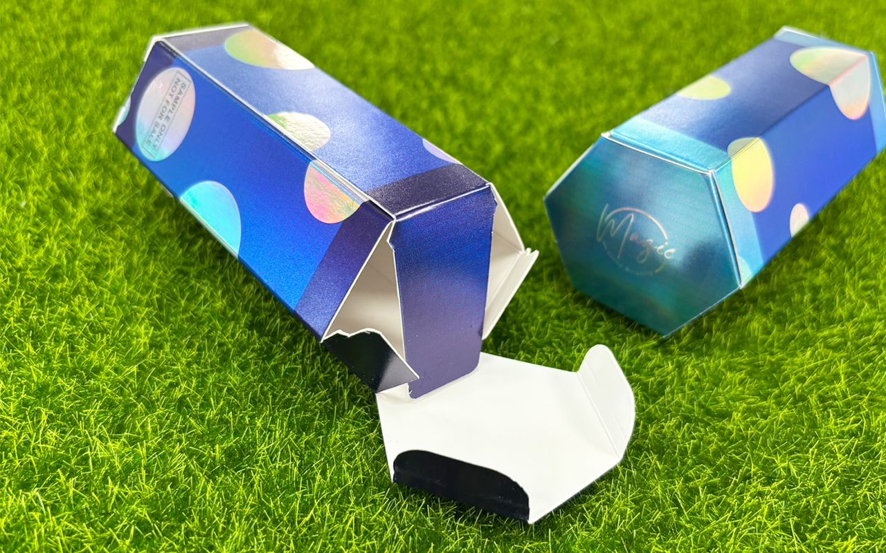 揮別傳統方正盒型,這六角型設計可為彩妝品保養包裝注入新穎視覺,獨特的結構讓產品在通路架上更具辨識度。搭配雷射紙材質,隨光折射展現繽紛色澤,為品牌增添時尚與高級質感。專業印刷技術結合創新設計,不僅提升外觀美感,更彰顯品牌差異化,讓您的產品在激烈市場中脫穎而出。