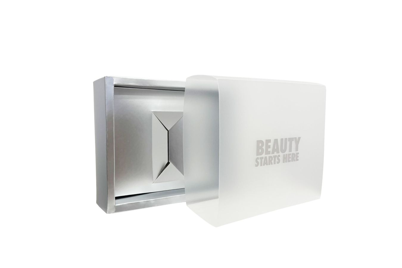 盒套包裝盒提供多樣化包裝材質選擇:盒身可使用銀箔紙、紙卡或環保材質,盒套可選透明PET或磨砂PP,呈現不同視覺與觸感效果。產品名稱可依需求採用燙銀、燙金或燙雷射工藝,提升品牌質感。盒套內部搭配量身設計內襯,牢固固定產品,精準符合產品尺寸。