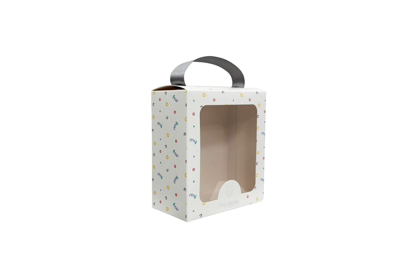 正在尋找兼具安全與品牌感的嬰童鞋包裝嗎?專為母嬰品牌、童鞋通路商與電商包裝設計的手提式白卡禮盒,採高挺度材質耐運輸、不易塌陷;PET透明窗展示鞋款質感,提升門市與電商銷售;LOGO燙金或專色印刷凸顯品牌形象,銀灰緞帶手提設計兼具實用與美觀,並提供尺寸客製與小量試產到量產服務。